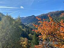 Il panorama è magnifico fin dall'inizio. Il sentiero è fiancheggiato da bellissimi fiori, gli alberi cominciano a cambiare colore. Sotto Crêta mangiamo il nostro panino.