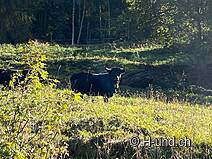 Dopo di che il sentiero sale e ci si imbatte in un pascolo per mucche. Fortunatamente, vediamo solo i resti, ma il sentiero passa proprio sul bordo della recinzione e il nostro piano d'emergenza sarebbe sceso rapidamente.