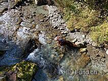 Dopo di che arriviamo ad un vecchio bisse (condotta dell'acqua) e il nostro percorso lo percorriamo. Nella Dixence Kesh può raffreddarsi. Ma attenzione, è pericoloso e bisogna fare attenzione!